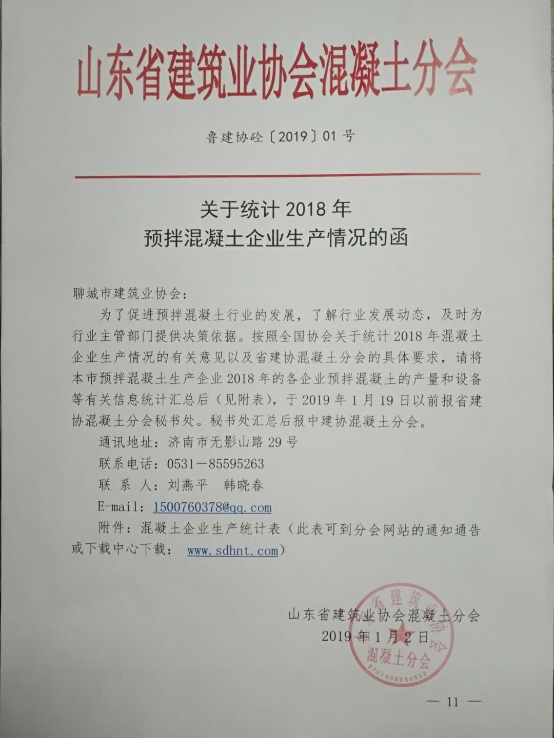 請(qǐng)各混凝土企業(yè)于2019年1月16日前將生產(chǎn)統(tǒng)計(jì)表發(fā)送至聊城市建筑業(yè)協(xié)會(huì)郵箱。郵箱地址:lcsjzyxh@qq.com聯(lián)系電話:8310706打印 關(guān)閉