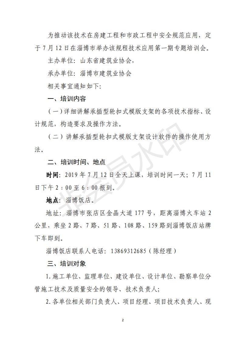 山東省建筑業(yè)協(xié)會 關(guān)于舉辦《建筑施工承插型輪扣式 模板支架安全技術(shù)規(guī)程》應(yīng)用講座的通知
