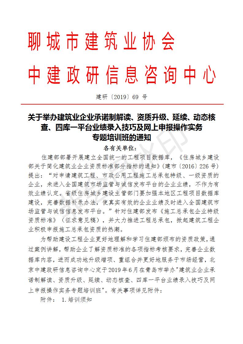 關于舉辦建筑業(yè)企業(yè)承諾制解讀、資質升級、延續(xù)、動態(tài)核查、 四庫一平臺業(yè)績錄入技巧及網上申報操作實務 專題培訓班的通知